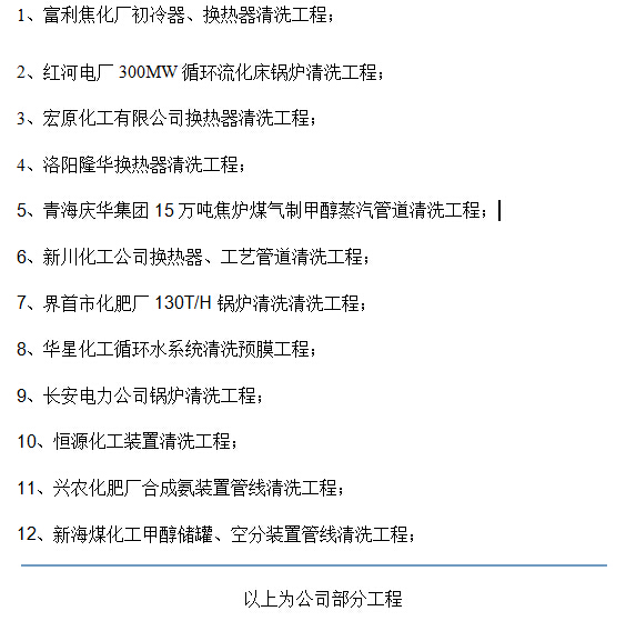 化學(xué)清洗業(yè)績(jī)